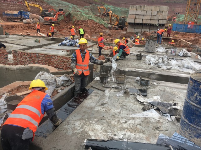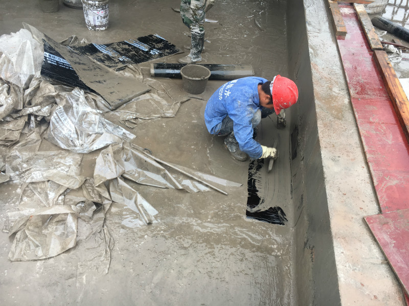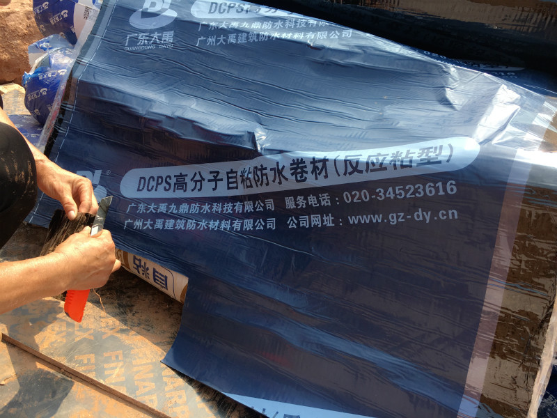本公司2018年10月承接的大英碧桂園地下室防水工程施工業(yè)務(wù),大英碧桂園地下室防水按照圖紙?jiān)O(shè)計(jì)采用高分子自粘防水卷材(反應(yīng)粘型)施工,承臺采用水泥基滲透結(jié)晶型防水涂料涂刷。