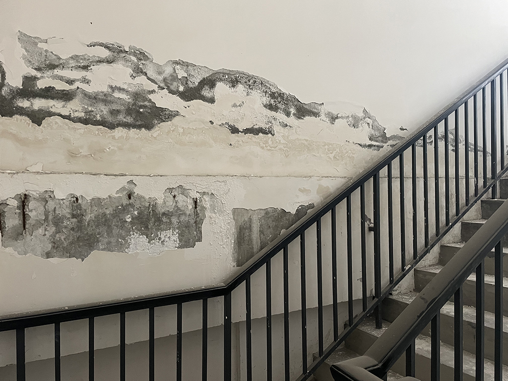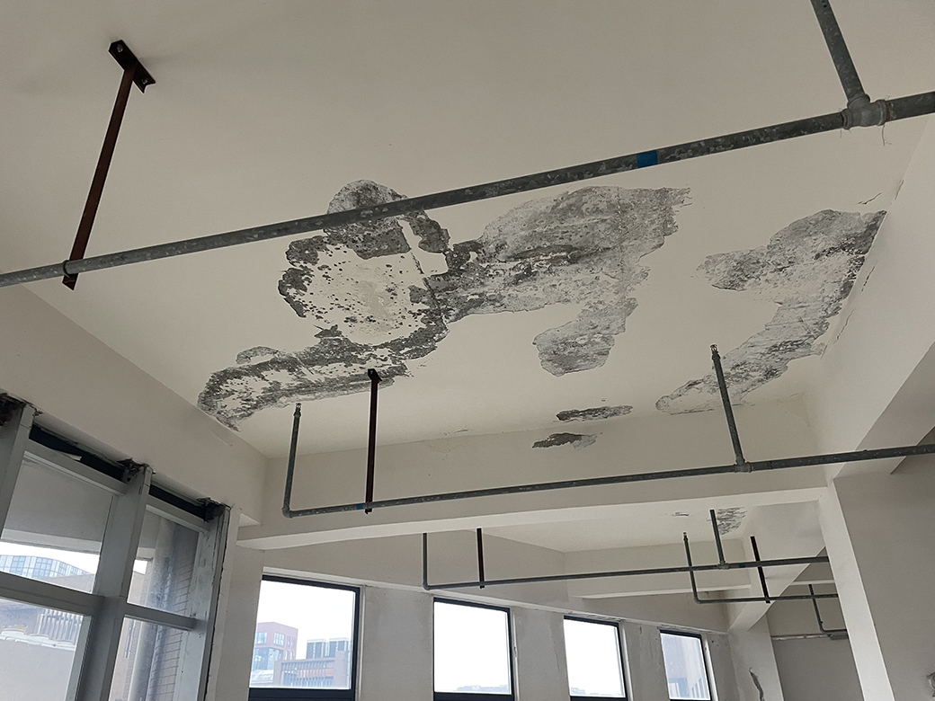 下面照片可以看到屋頂漏水比較厲害,屋頂漏水點(diǎn)位太多了