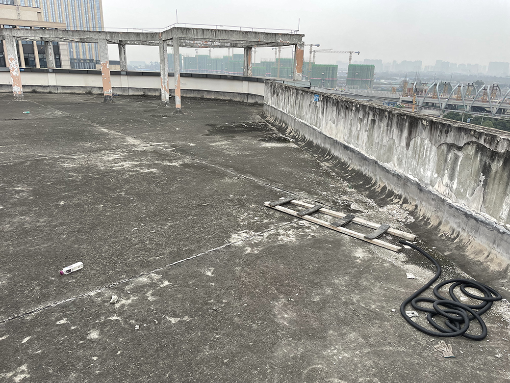 四川城際軌道交通材料有限責(zé)任公司位于成都市金牛區(qū)金鳳凰大道666號(hào)中鐵軌道交通高科技產(chǎn)業(yè)園第8幢2單元的辦公樓,屋頂以前開(kāi)發(fā)商修建的時(shí)候防水做的不好,下雨的時(shí)候頂樓的屋頂漏水嚴(yán)重,對(duì)室內(nèi)造成嚴(yán)重的影響,業(yè)主方找了幾家防水公司根據(jù)屋頂?shù)默F(xiàn)場(chǎng)情況制定了幾套方案,經(jīng)過(guò)業(yè)主方的詳細(xì)斟酌,初步確定采用我公司推薦的屋頂外露型防水隔熱一體化施工工藝,然后業(yè)主方又到我公司其他正在采用此方案施工的工地現(xiàn)場(chǎng)考察,對(duì)已經(jīng)施工的現(xiàn)場(chǎng)非常滿意,最總決定采納我公司的推薦方案。