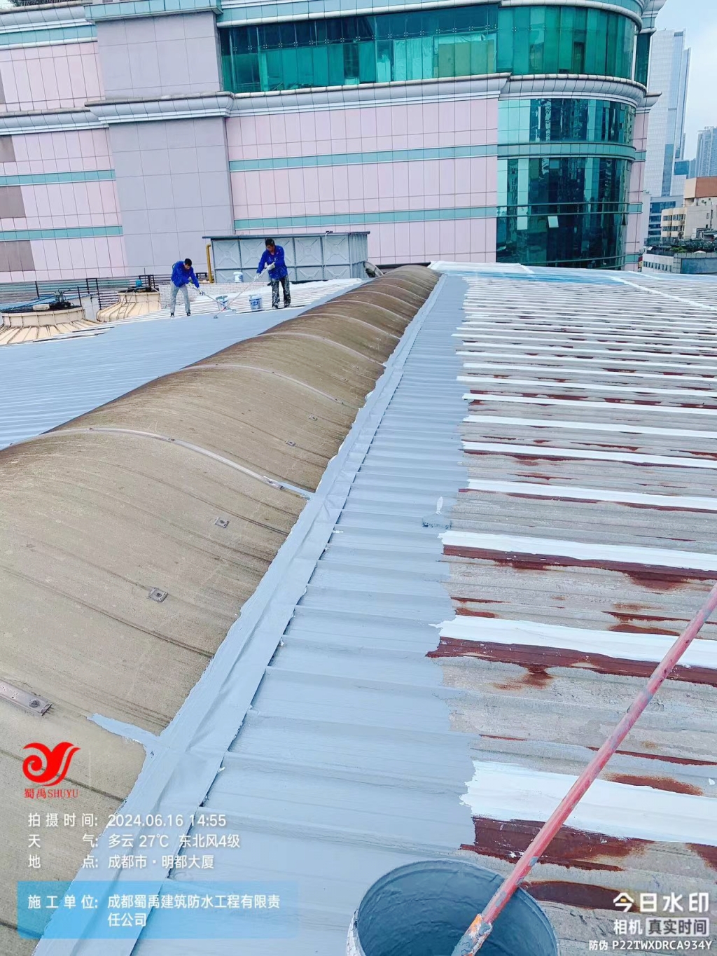 【成都蜀禹建筑防水工程有限責任公司工程案例宣傳】—— 明都大廈玻璃頂與彩鋼頂防水防腐翻新,重塑建筑防護新篇章