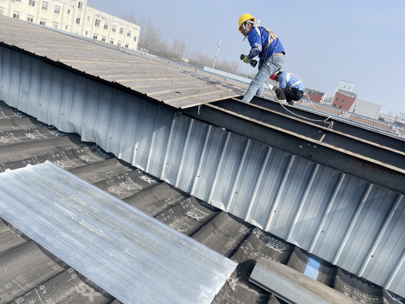 經(jīng)過幾天的高效施工,成都欣國立廠房屋頂煥然一新。FRP采光瓦與原有鋼結(jié)構(gòu)屋面**融合,氣樓區(qū)域采光、防水、通風(fēng)功能全面升級。經(jīng)暴雨及大風(fēng)天氣考驗(yàn),無任何滲漏、松動(dòng)現(xiàn)象,業(yè)主對蜀禹公司“專業(yè)、高效、精益”的服務(wù)品質(zhì)給予高度評價(jià)。
