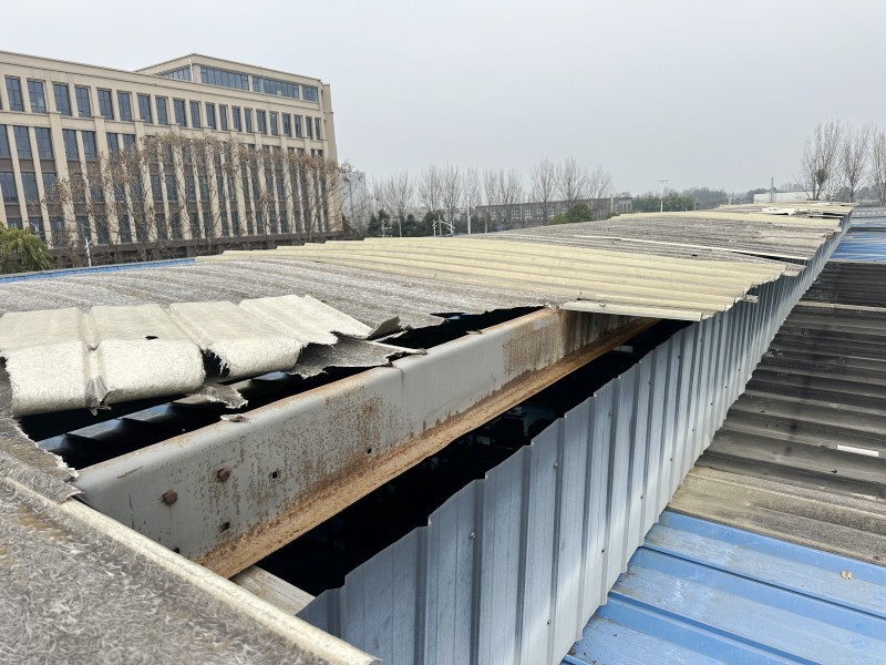 成都欣國立低溫科技有限公司位于成都市郫都區(qū),其鋼結(jié)構(gòu)廠房屋頂采光瓦因多年使用出現(xiàn)老化、破裂問題,導(dǎo)致廠房漏雨、采光性能下降,影響生產(chǎn)環(huán)境安全及能源效率。業(yè)主方經(jīng)過多方考察,最終委托成都蜀禹建筑防水工程有限責(zé)任公司對屋頂氣樓區(qū)域的老化玻璃鋼采光瓦進(jìn)行全面更換,并升級為高性能FRP(玻璃鋼)采光瓦。