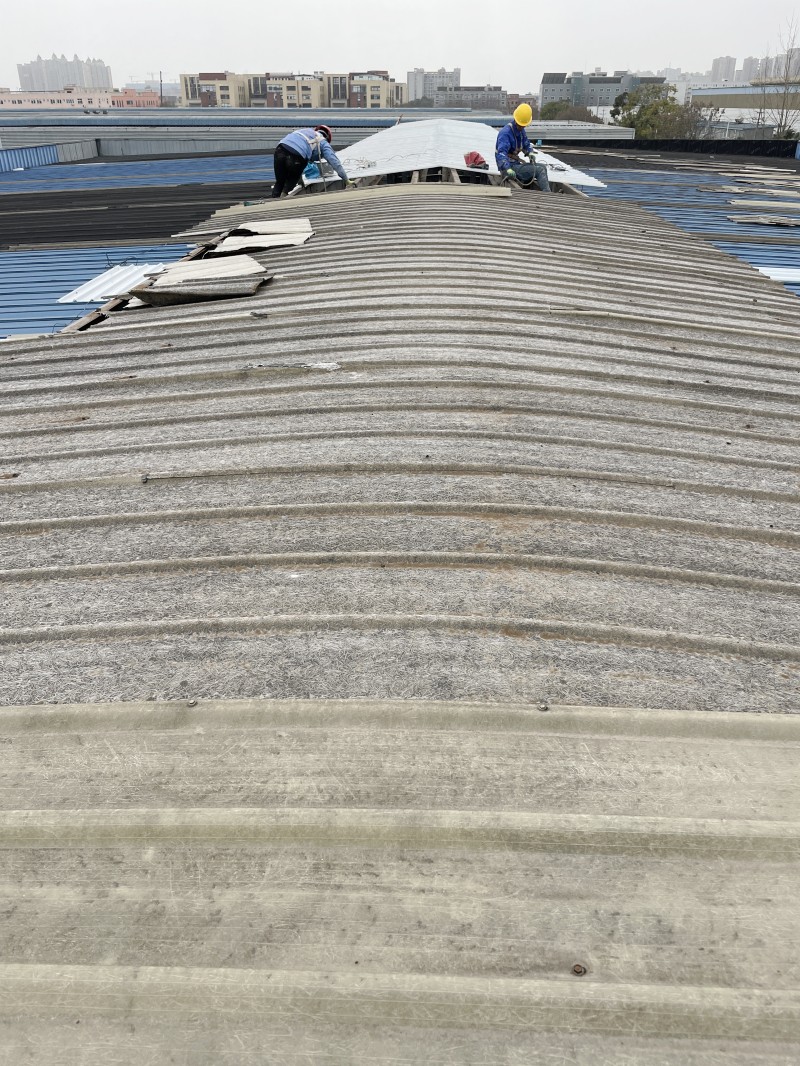 原采光瓦因長期風(fēng)化已脆化嚴(yán)重,拆除過程中需避免碎片墜落損壞廠房設(shè)施,同時(shí)確保廢舊材料徹底清場。蜀禹團(tuán)隊(duì)采用分段切割、逐塊移除的工藝,并配備專業(yè)防護(hù)設(shè)備,確保施工安全與場地整潔。