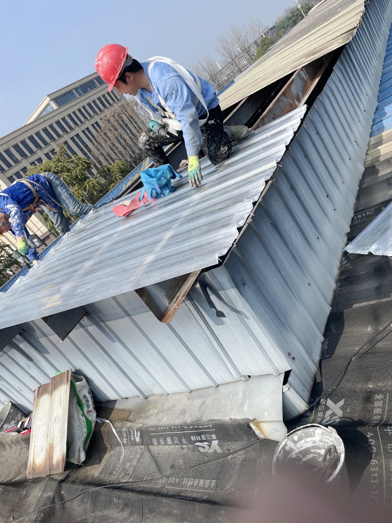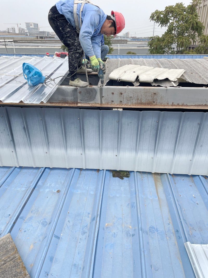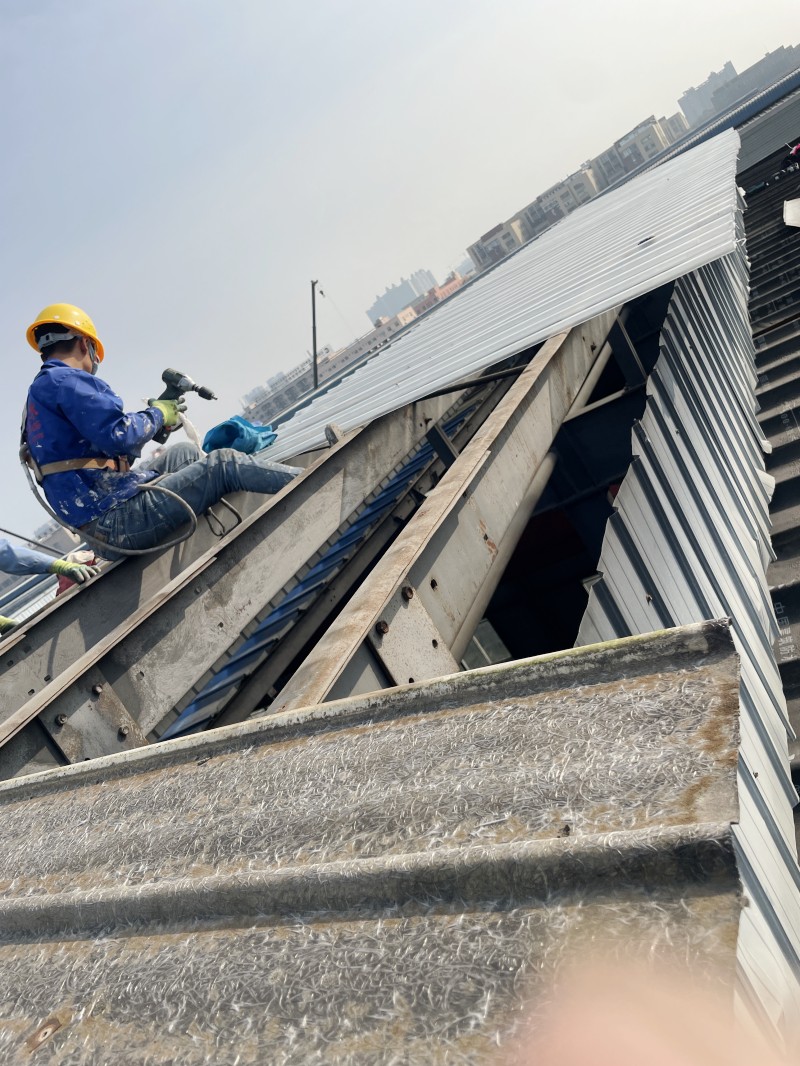 蜀禹技術(shù)工人憑借多年鋼結(jié)構(gòu)屋面施工經(jīng)驗(yàn),嚴(yán)格按照“拆除—清理—測量—安裝—檢測”流程操作。施工全程佩戴安全裝備,高空作業(yè)規(guī)范有序,未對廠房正常運(yùn)營造成干擾。
