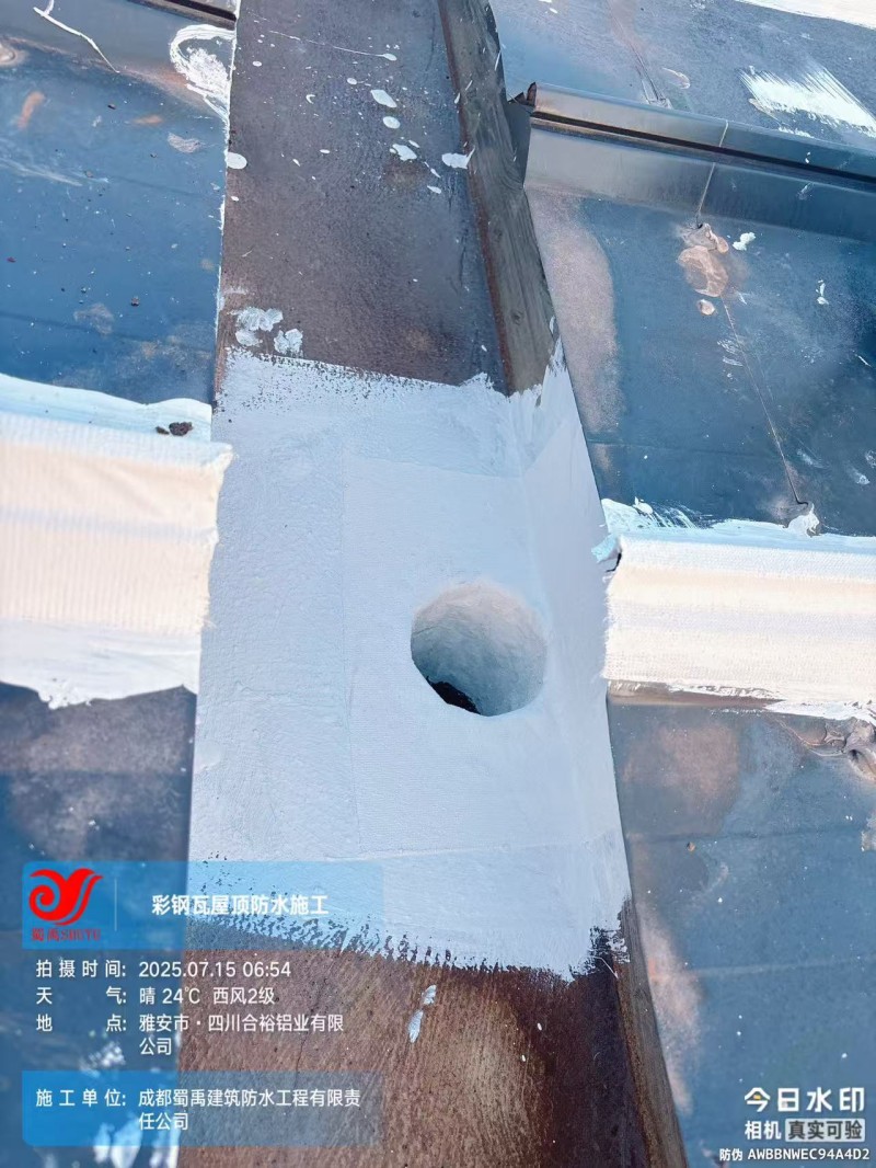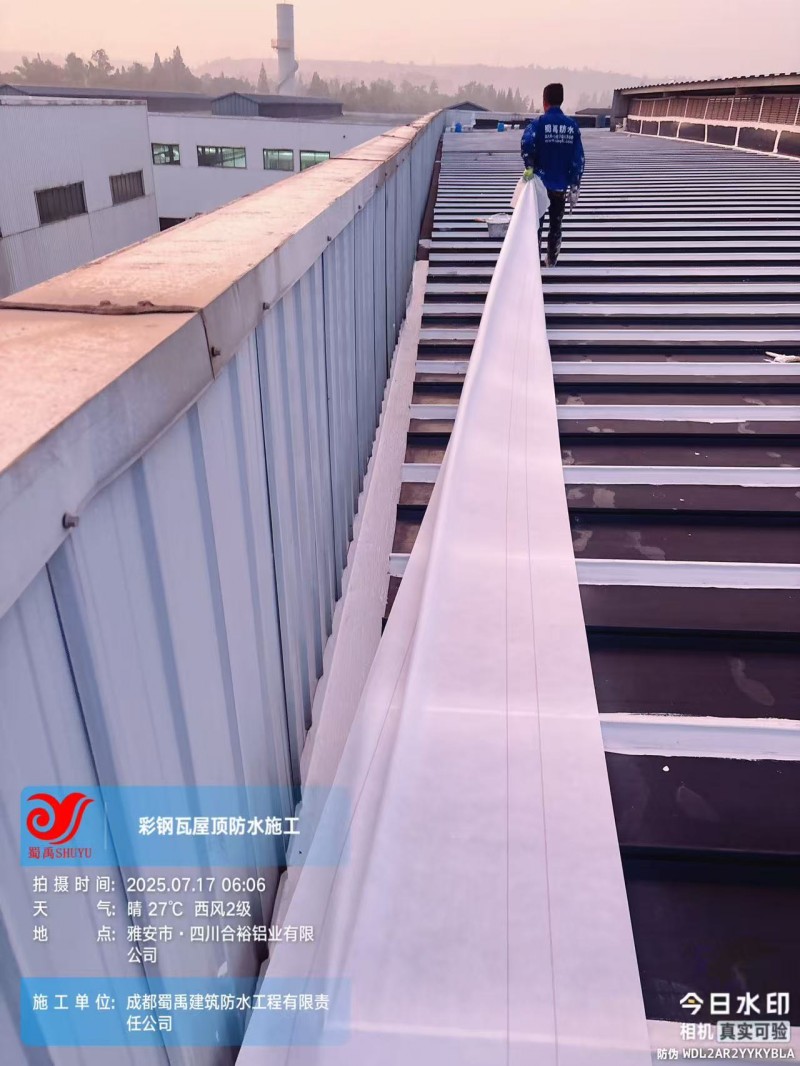 工業(yè)廠房屋頂漏水是企業(yè)生產(chǎn)運(yùn)營中的常見痛點(diǎn),不僅影響設(shè)備安全與生產(chǎn)效率,反復(fù)維修更會(huì)增加企業(yè)成本。此前,雅安誠裕金屬材料有限公司位于四川省雅安市名山區(qū)永興鎮(zhèn)永興四路廠區(qū)內(nèi)的 3 號(hào)鋼結(jié)構(gòu)廠房,就面臨這一難題 —— 廠房建成數(shù)年后出現(xiàn)多處漏水,雖經(jīng)其他公司處理,但防水效果始終不理想。為徹底解決漏水問題,雅安誠裕經(jīng)過多方考察與技術(shù)分析,最終選擇與成都蜀禹建筑防水工程有限責(zé)任公司合作,采用蜀禹** SYR 金屬屋面無縫防水系統(tǒng),實(shí)現(xiàn)了屋頂防水與防腐的雙重保障。