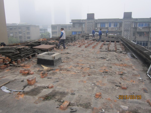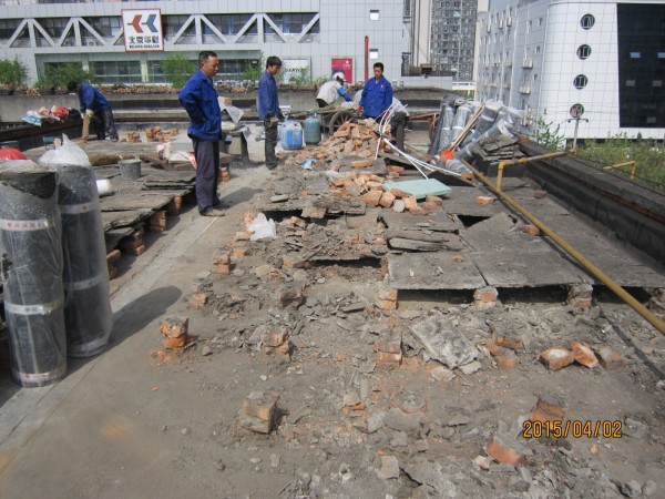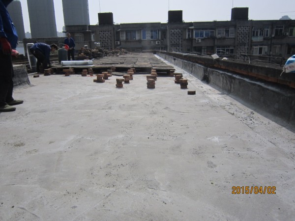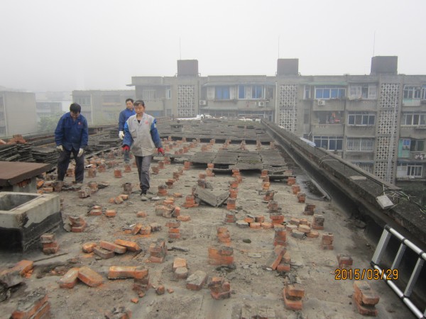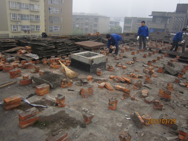 中節(jié)能建設(shè)工程設(shè)計(jì)院有限公司在成都市經(jīng)華北路一號(hào)院和經(jīng)華北路10號(hào)的宿舍小區(qū)老舊房屋由于年代久遠(yuǎn),房屋多處漏水,公司針對(duì)小區(qū)所有屋頂進(jìn)行了一次全部的防水施工,將屋頂有隔熱板的區(qū)域屋頂,隔熱板揭開,基層清理干凈,滿鋪一層改性瀝青防水卷材,再做一層水泥砂漿保護(hù)層,最后再蓋回隔熱板。1號(hào)樓屋頂無(wú)隔熱板的,在屋頂表面鋪一層改性瀝青防水卷材。