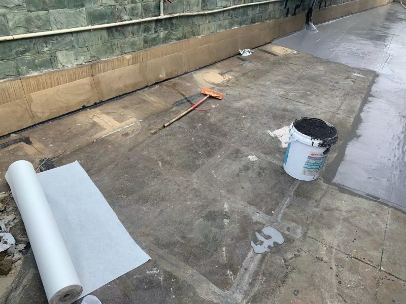 成都依能科技股份有限公司屋頂漏水難題困擾了客戶多年,屋頂原來靠女兒墻一圈為屋頂花園,后來漏水嚴重,將屋頂花園全部敲開,敲開之后重新做了防水,然后貼了瓷磚,但是并未解決問題,還是依然漏水嚴重,后來又多方位反復修修補補,最后沒辦法了,室內依然到處漏水,找到了我們成都蜀禹建筑防水工程有限責任公司,我們到現場實際查勘了情況,分析原因應該是屋頂基層防水沒有做好是主要原因,表面貼了瓷磚的,地面的水從瓷磚縫隙滲漏到瓷磚下面,然后漏水到了瓷磚下面去了,導致樓下漏水,現在是屋頂已經貼了瓷磚了,就不能再做防水卷材了。防水卷材一般分為熱熔瀝青類防水卷材和高分子類自粘或濕鋪自粘防水卷材,這些防水卷材在已經貼了瓷磚的屋頂施工的話,有一個弊端,在瓷磚表面的粘結力不是很好,當時粘貼好了,隨著時間的推移,過不了多久就會與瓷磚之間分離開,這樣就變成了雨傘式,到時屋頂萬一哪里有問題,水到了下面又四周擴散而不容易找到漏水點,又是極大地隱患,我們公司制定的方案是采用聚合物水泥防水涂料配合蜀禹公司防水專用的縫織聚酯布施工,這樣施工出來的防水層與基層瓷磚表面粘貼極為牢固,并且鋪設了專用縫織聚酯布增強層,抗拉性能良好,并兼顧一定的彈性,達到一次處理永無漏水后顧之憂的目的。